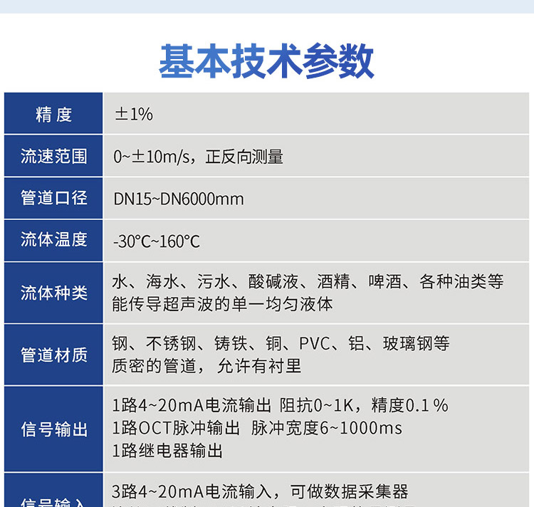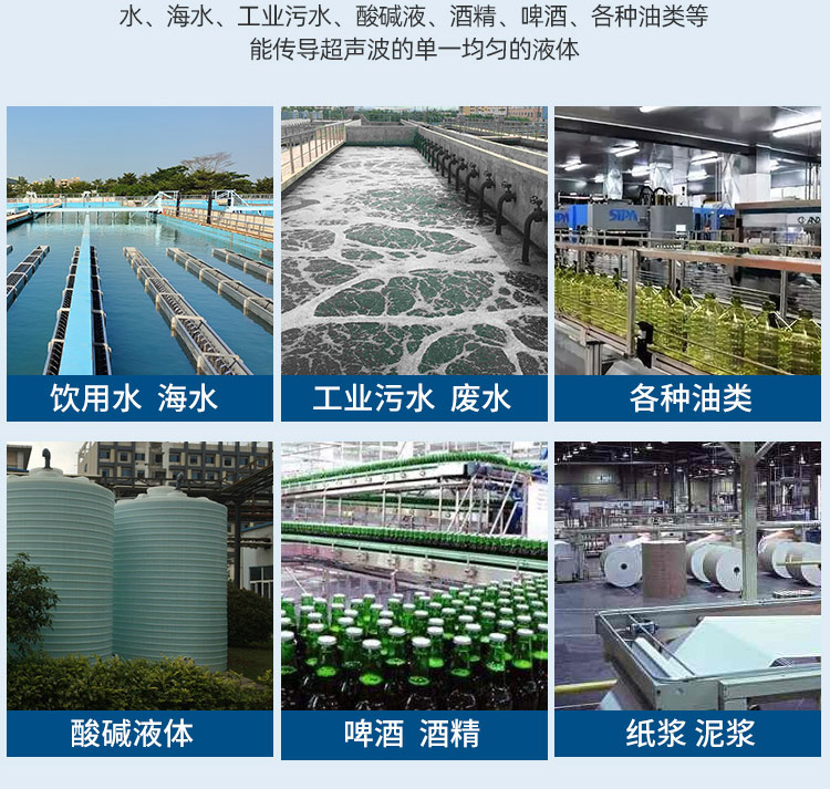流體種類:水、海水、污水、酸堿液、酒精、啤酒、各種油類等能傳導(dǎo)超聲波的單一均勻液體