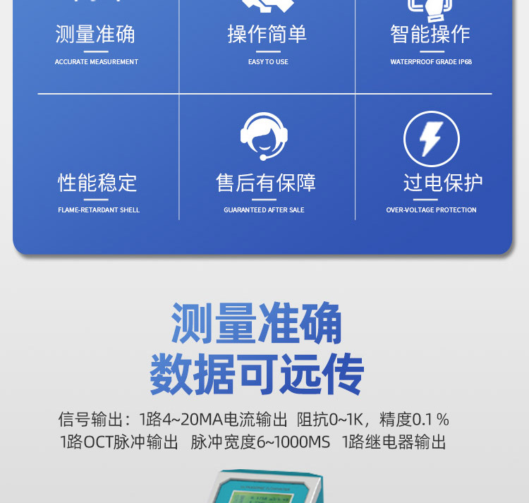 一次表防護(hù)等級(jí)可達(dá)到IP68可浸入水下2米工作