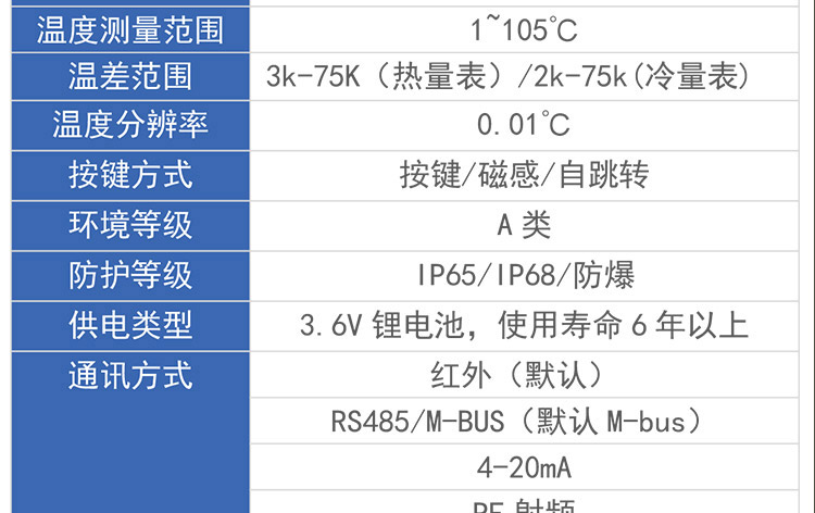 溫差范圍 3k-75K(熱量表)/2k-75k(冷量表)