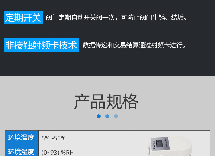 3、可對用水量進行記錄和電子顯示,還可以按照約定對用水量自動進行控制,自動完成階梯水價的計算。