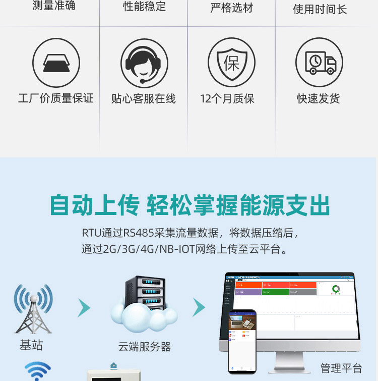 1、4G遠傳插入分體式電磁流量計是在插入式電磁流量計基礎上加一個4G遠傳RTU通訊智能模塊。在大管道流量檢測中,具有絕對的安裝優勢與價格優勢。