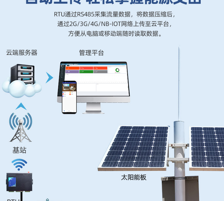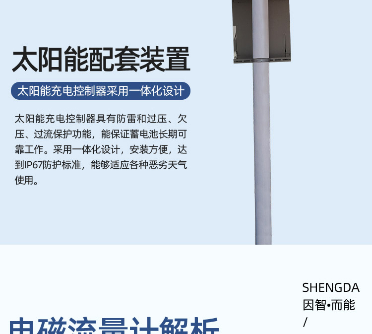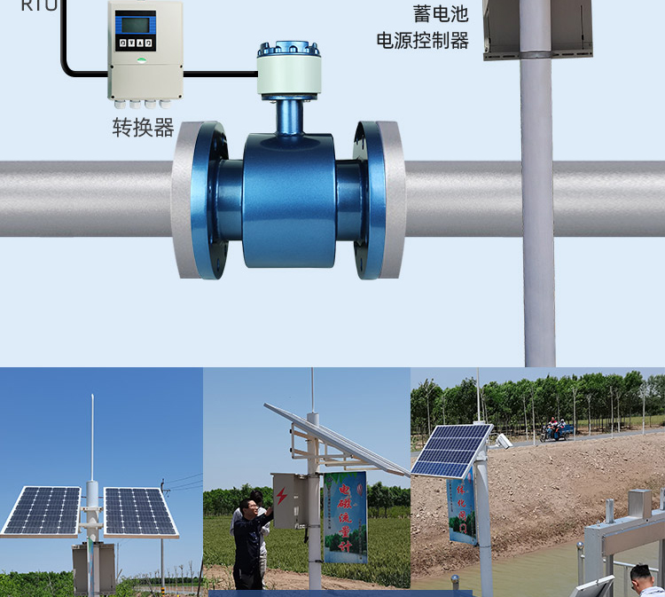 太陽(yáng)能分體智能遠(yuǎn)傳電磁流量計(jì)具有無(wú)線數(shù)據(jù)遠(yuǎn)傳的流量計(jì)量和控制系統(tǒng),主要應(yīng)用于廠區(qū)、油田、農(nóng)田灌溉和市政供水計(jì)量等無(wú)市電情況下的流量計(jì)量和控制