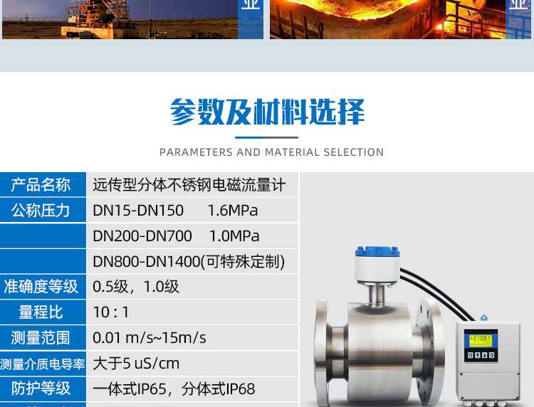 智能遠傳不銹鋼分體電磁流量計用于測量封閉管道中導電液體和漿液體體積流量,精度較高,轉換器與傳感器異地安裝,更適合現場環境比較差場合。廣泛用干化工化纖,食品造紙,水利灌溉、礦冶,水利制藥等工業領域。