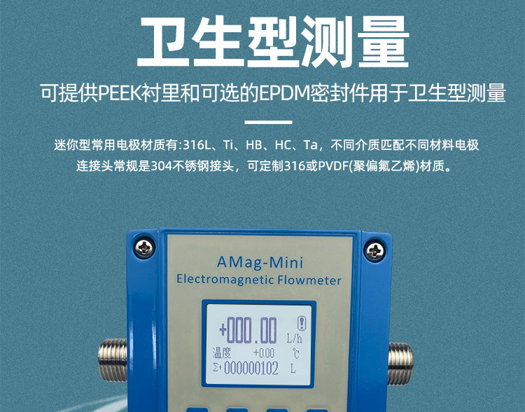 可提供PEEK襯里和可選的EPDM密封件用于衛(wèi)生型測量: